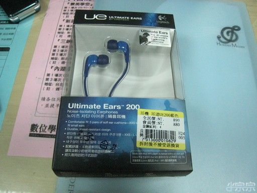 結果今天晚上去上課又把耳機忘在車上包包裡,走回去走回來20分鐘跑不掉. 索性就順路去NOVA看中UE200,花30秒問朋友狀況,然後就去付錢了. 打八折才七百出頭,為什麼不買39元的…嗯~太便宜的真的很容易壞,小宗宗不想每個月都花時間去買耳機,啊~其實可以一次買十二組,一個月換一組,還是比較便宜XD