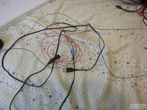 很快的把原本的電源線剪斷後中間用細線接起來把長度延長~