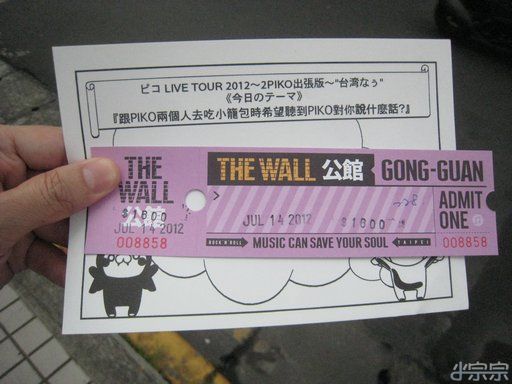 因為要先領票的關係,下午四點就先到位於公館的The Wall會場領票,問了最後尾的女生說”請問這是在排取票嗎?” 對方說:”電影票嗎?” (看來小宗宗一整個就不是會去看PIKO演唱會的style XD) 好不容易說明來歷後原來是在排隊買周邊啊~只好咻一下的就下去取票,順便瞥一下週邊商品.有賣手偶耶~好想要啊~回過神來手上已拿了兩張票靜靜的站在最後尾排隊等買周邊了XD