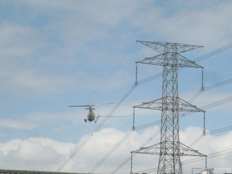 路上意外看到直升機在洗高壓電塔的絕緣礙子