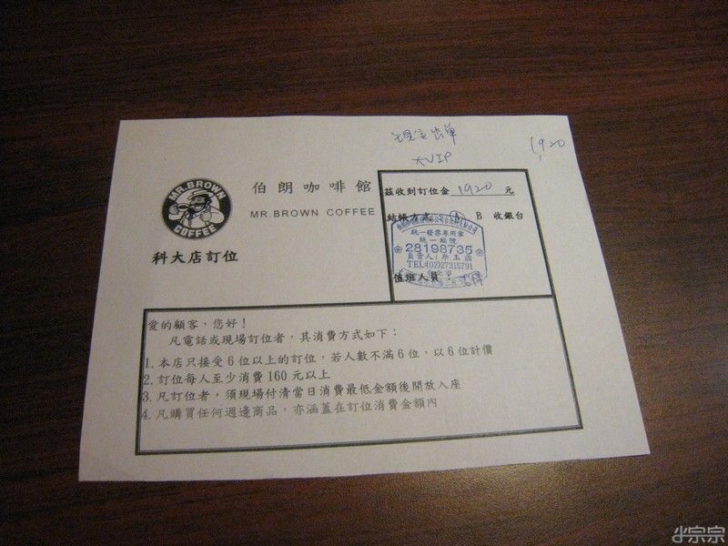 15分鐘前就先到北科對面的伯朗咖啡,包廂上週就預訂好啦~一進去先繳NT$1920包廂費(可抵消費)