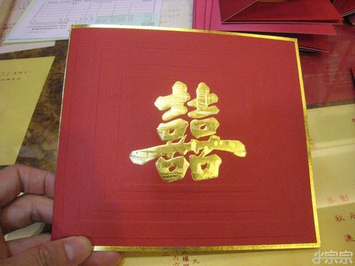 我們很快就挑好了,選了這個傳統但不老派的喜帖,燙金雙囍字樣簡單大方,