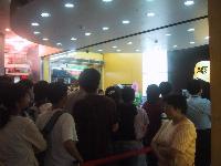 猜猜看照片裡的人在做啥,並不是一元競標之類的活動喔,而是大家在看奧運的轉播,燦坤還特地搬出大台的平面電視給大家看,真是不錯呢~