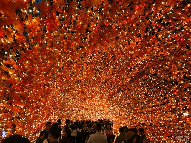 往大遠百方向的走道很漂亮~牆壁上除了燈外還有黃色的葉子