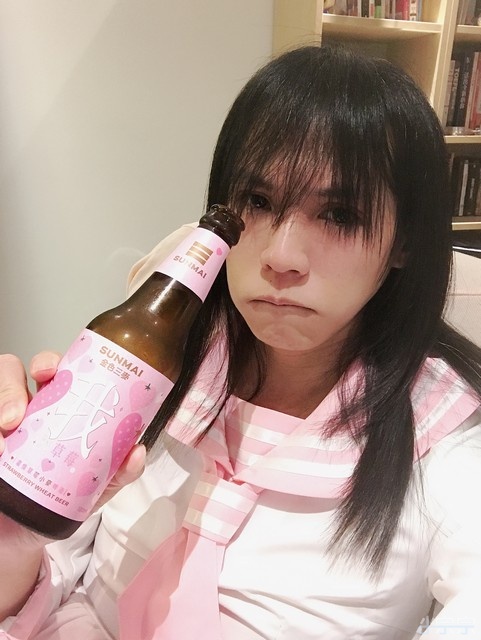 金色三麥的草莓啤酒, 跟小宗宗的衣服超配的! 還不錯喝~