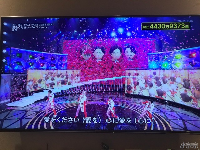 邊吃邊看紅白, 有個與觀眾的互動橋段, 按遙控器按鈕達到一定的次數後現場會灑花, 挺有意思的.