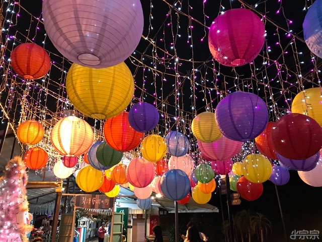 後面藝術大街有很多彩色燈籠高高掛, 拍起來也蠻漂亮的.
