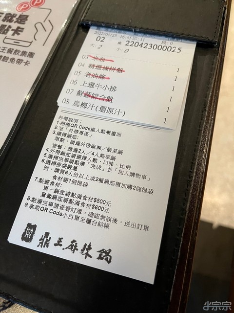 服務生介紹的時候有提到滿NT$1500可以有兩款肉有買一送一, 小宗宗心想應該很難點到1500吧~