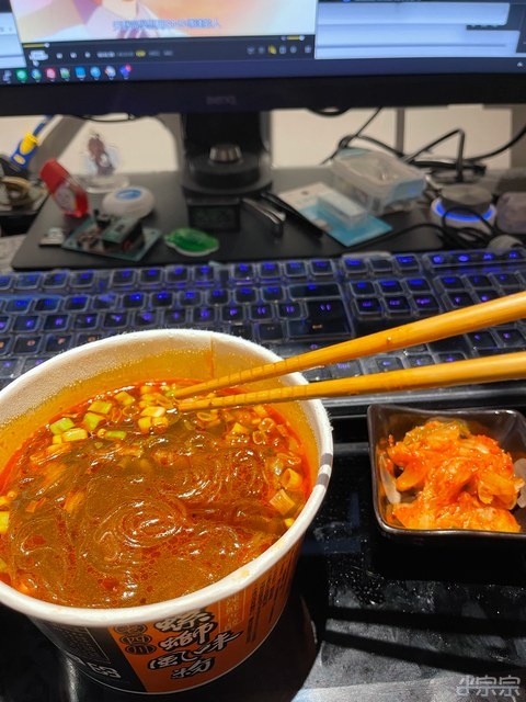 老四川螺螄風味粉的冬粉, 雖然網路上評價很多人說跟真的螺螄粉差很多, 但其實整體來說是小宗宗蠻喜歡的口味, 酸酸辣辣的~ 不過拿來當午餐有點太少就是了.