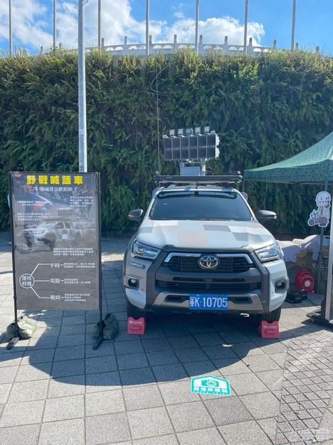 旁邊還有一台新式的數位迷彩的 野戰喊話車
