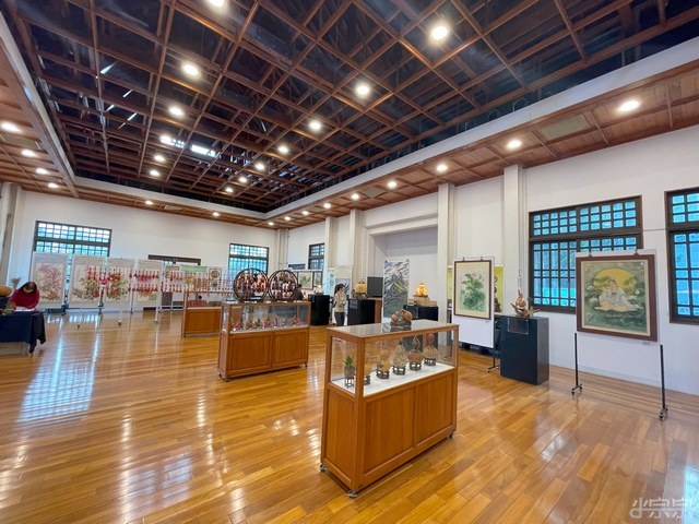 武德殿今天一樓有葫蘆的展覽, 然後屋頂有個恐龍很可愛! 背面還有尾巴.