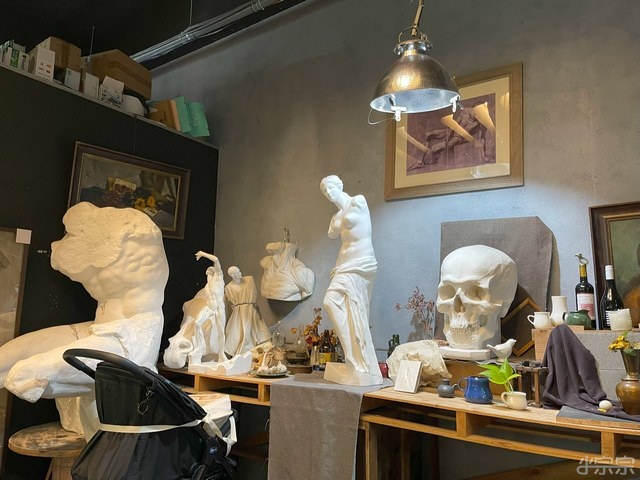 老闆是一位之前留學俄羅斯的畫家, 在當地認識他的太太後回台灣開了一間畫室+餐廳, 店內一部分是畫室, 所以可以看到以前美術課會看到的擺設, 還蠻有意思的