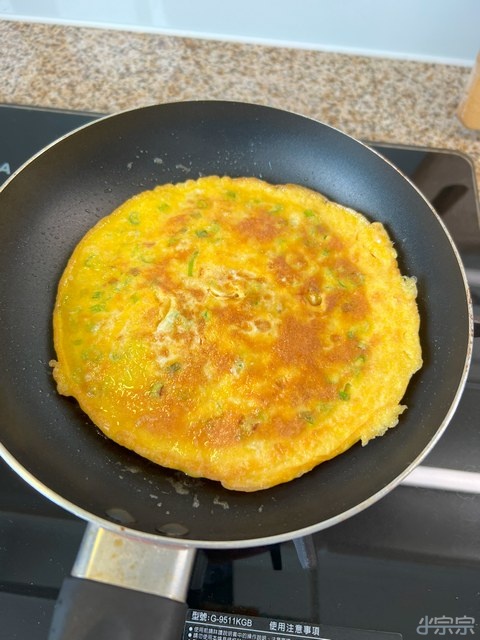 下午又煎了一次蔥蛋, 這次油放比較多一點點, 感覺煎出來的蛋變得比較漂亮~