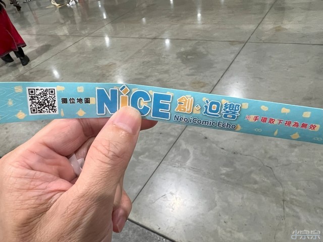 手環上的小巧思, 有附上攤位地圖的二維碼, 掃碼就可以用手機看攤位圖. 挺不錯的設計.