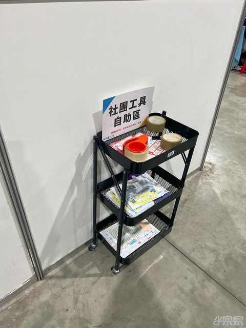 會場中間有提供這個社團工具的小車子覺得很有趣, 攤主臨時需要膠帶和簡單文具可以幫上忙.