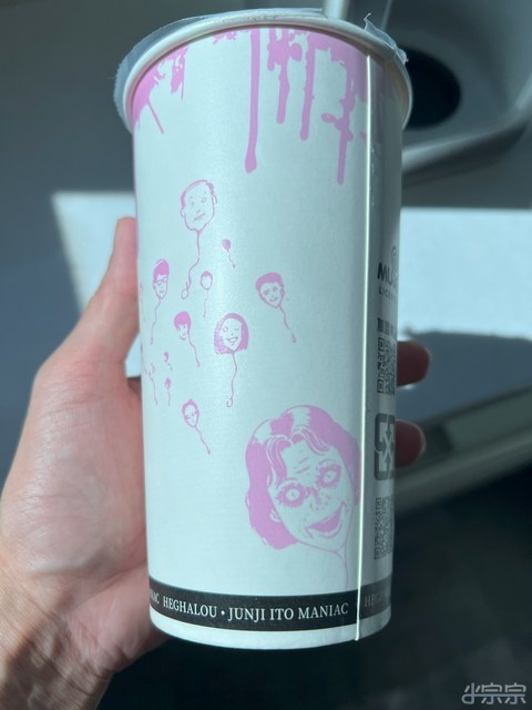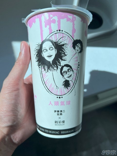 最近鬼月所以伊藤潤二有與鶴茶樓合作. 那個紙杯很有趣. 乍看只是伊藤潤二的插圖在上面.