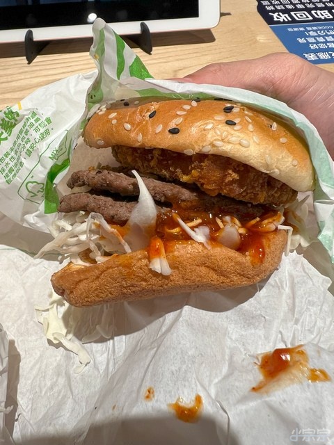 中午吃個麥當勞, 最近出的這個韓味雙牛魷魚堡還蠻好吃的. 雙層肉+魷魚吃得蠻飽的也不會太貴! 推薦!