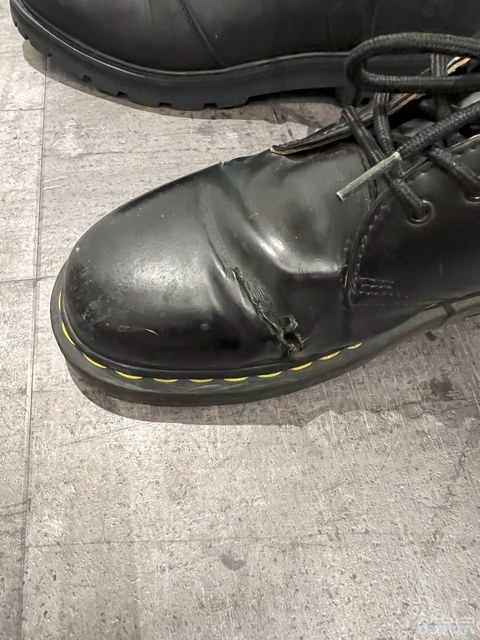 原本的Dr. Martens馬汀鞋不太耐用. 2023-06-22 買的, 才兩年就破成這樣. 是在專櫃買的正品, 不是假貨.