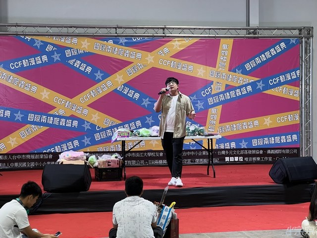主持人又來唱歌吸引觀眾來舞台區了.
