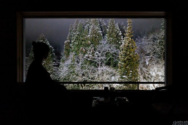 小宗宗泡寢湯的時候剛剛微微飄雪, 可以看到細雪紛飛飄落在臉上微微的冰涼感, 但是身體是泡在溫泉裡, 覺得很舒服.